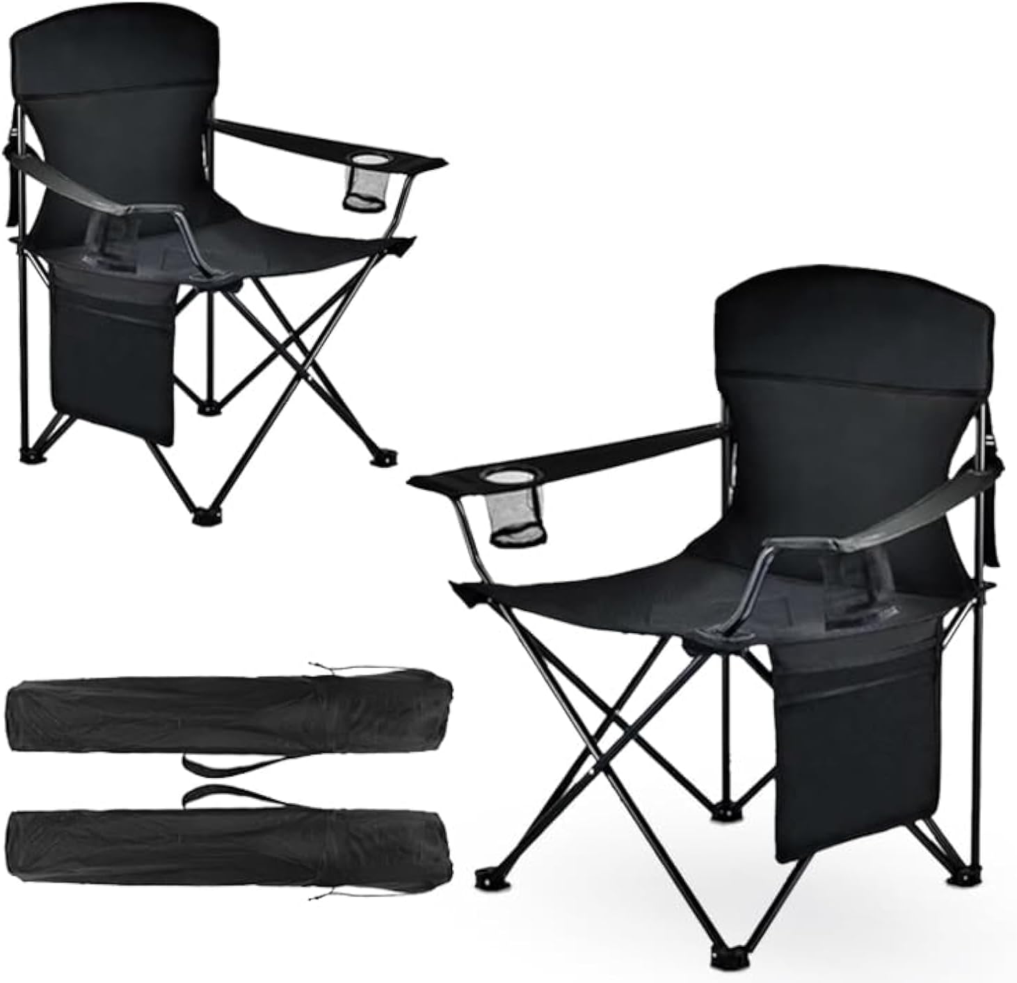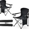 - CONVENIENT ACCESSORIES – Our portable camping chair is equipped with 2 convenient cup holders in the armrests, allowing you to keep beverages, mobile phones, and other small necessities within easy reach.