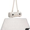 - 【Extended Carrying Strap】There are three ways to use the carrying strap of the sand free beach blanket. The portable picnic blanket can be carried easily by hand, on either shoulder by adjusting to the proper lengths, so you can carry other picnic suppliers with the other hand, or even two hands.The buckle is a smart equipment to fasten and unfasten the closing straps.