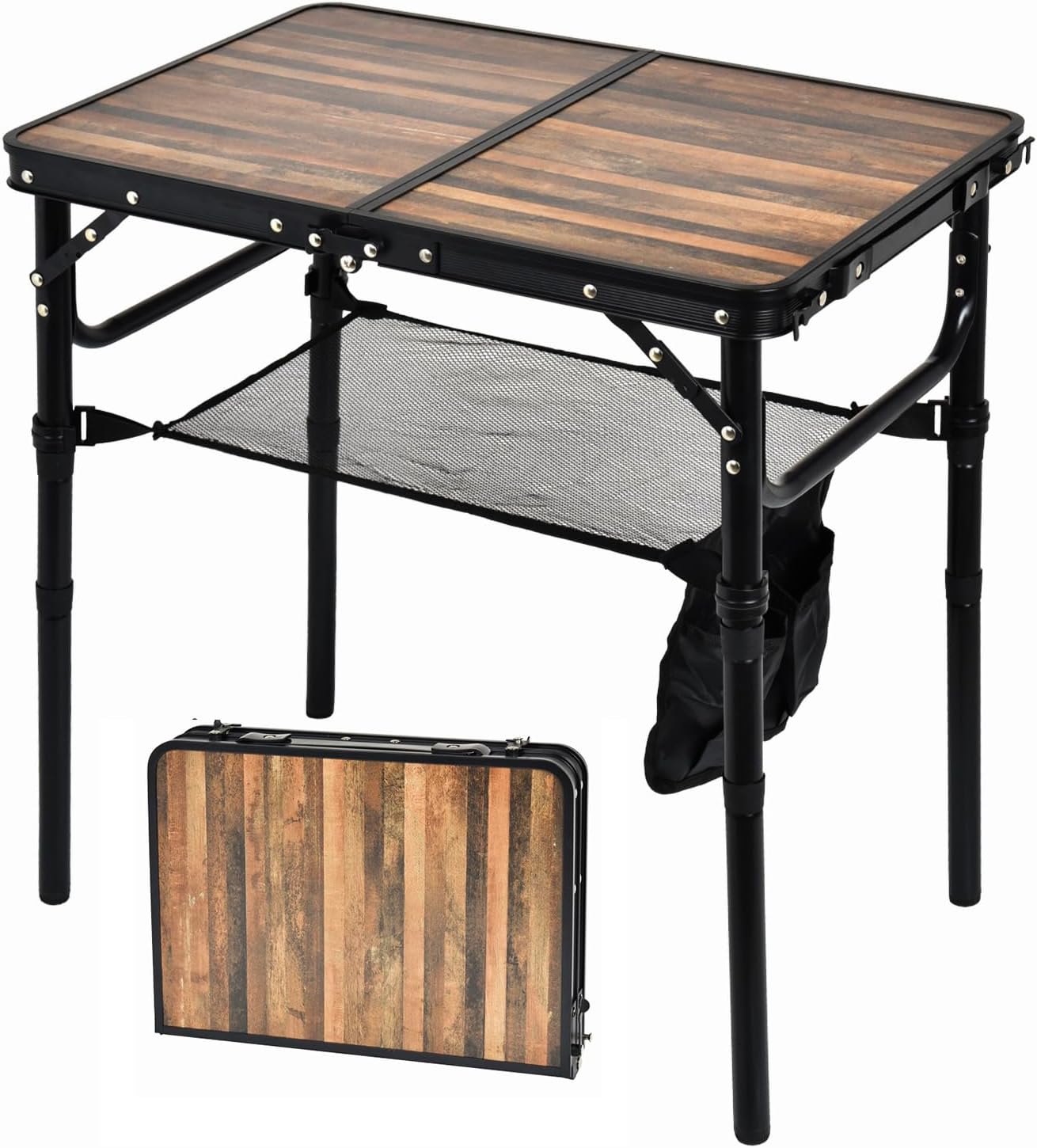 - Folds up Small —— This small camping table takes up little space in your camping gear. Fold up like a briefcase for easy carrying. Perfect for RV living.
